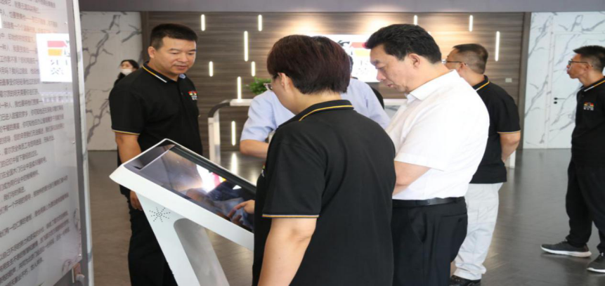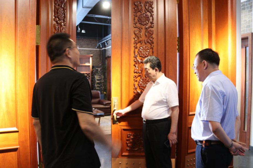 在生產車間、原材料庫房和產品展廳現場,霍爾茨公司趙崇聯總經理詳細介紹了霍爾茨木門的生產情況以及產品特點。對于霍爾茨以消費者健康安全為導向的產品理念,主要原材料選用高等級材料的環保做法,干凈整潔的生產環境,井然有序的現場管控,以及流暢穩定與最優布局的人性化管理,王樹平董事長表示高度認可。