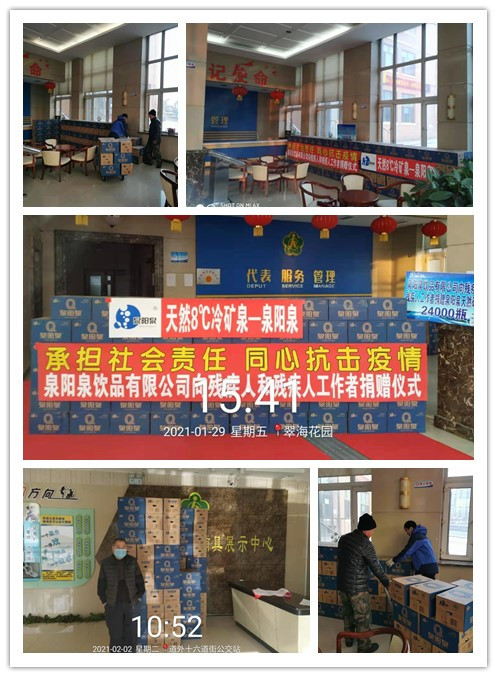 2021年伊始,新冠疫情再度襲來,為保障黑龍江省一線的殘疾人工作者及貧困殘疾人的抗疫物資使用及特殊群體的基本生活不受影響,同時,也為了能更好的幫助基層服務(wù)殘疾人的工作人員更好的工作,吉林森工集團泉陽泉飲品有限公司于2021年1月29日——2月5日,向黑龍江省殘疾人福利基金會各單位捐贈泉陽泉天然礦泉水,為抗擊疫情,貢獻(xiàn)自己的力量。