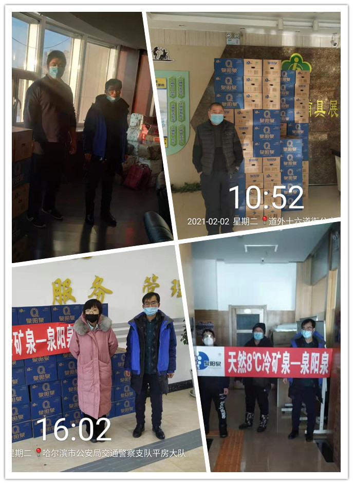 泉陽泉此次行動,主要囊括了包括哈爾濱市南方區(qū)殘疾人聯(lián)合會、哈爾濱香坊區(qū)殘疾人聯(lián)合會、哈爾濱道外區(qū)殘疾人聯(lián)合會、哈爾濱道里區(qū)殘疾人聯(lián)合會、哈爾濱松北區(qū)殘疾人聯(lián)合會、哈爾濱呼蘭區(qū)殘疾人聯(lián)合會、哈爾濱平房區(qū)殘疾人聯(lián)合會、哈爾濱市衛(wèi)健委等多家殘疾人慈善機構(gòu),共計千余箱的泉陽泉天然礦泉水送到一線單位。