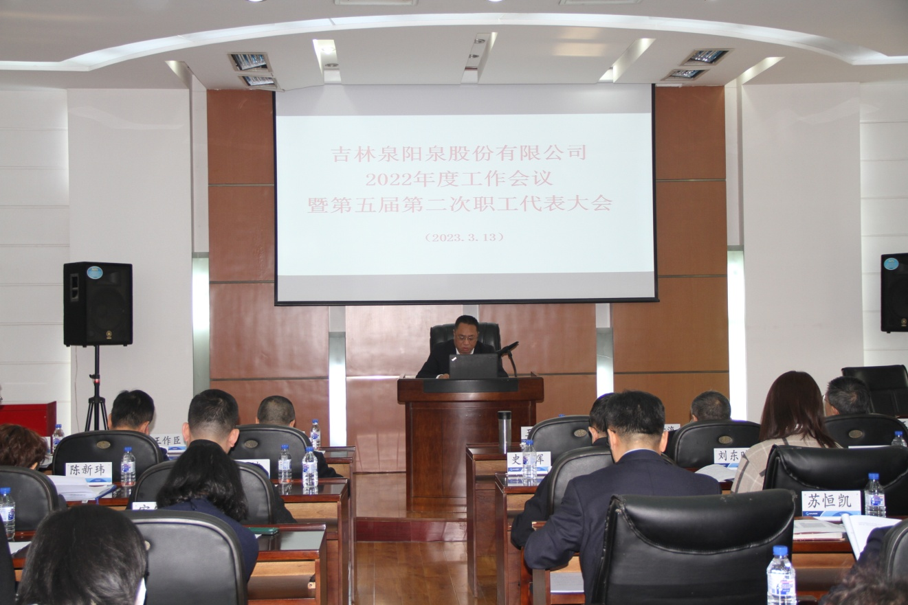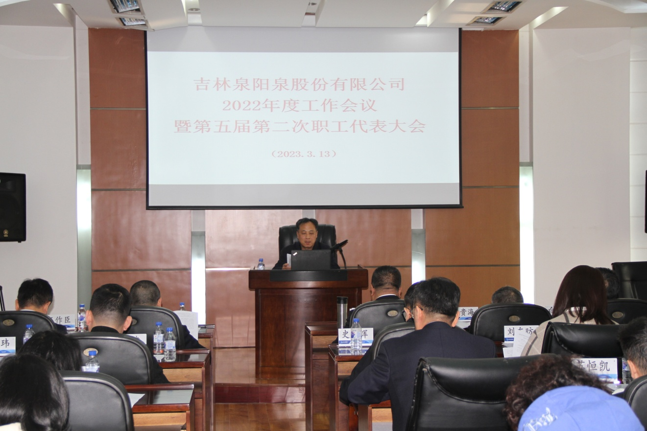 2023年3月13日,吉林泉陽泉股份有限公司隆重召開2022年度工作會議暨第五屆二次職工代表大會。